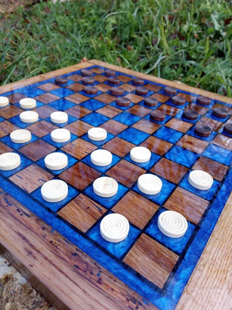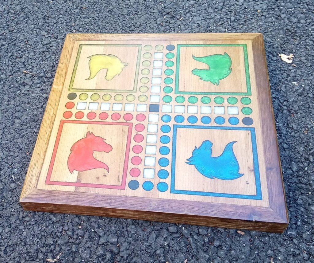 • Jeux de Dames et de Petits Chevaux : Des plateaux aux couleurs profondes et aux reflets captivants grâce à la résine.
