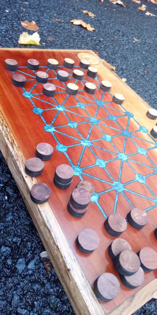 Chaque plateau est une œuvre d’art fonctionnelle, où la chaleur du bois rencontre la transparence moderne et les couleurs vibrantes de la résine époxy. C’est l’alliance parfaite entre tradition ludique et design contemporain.
